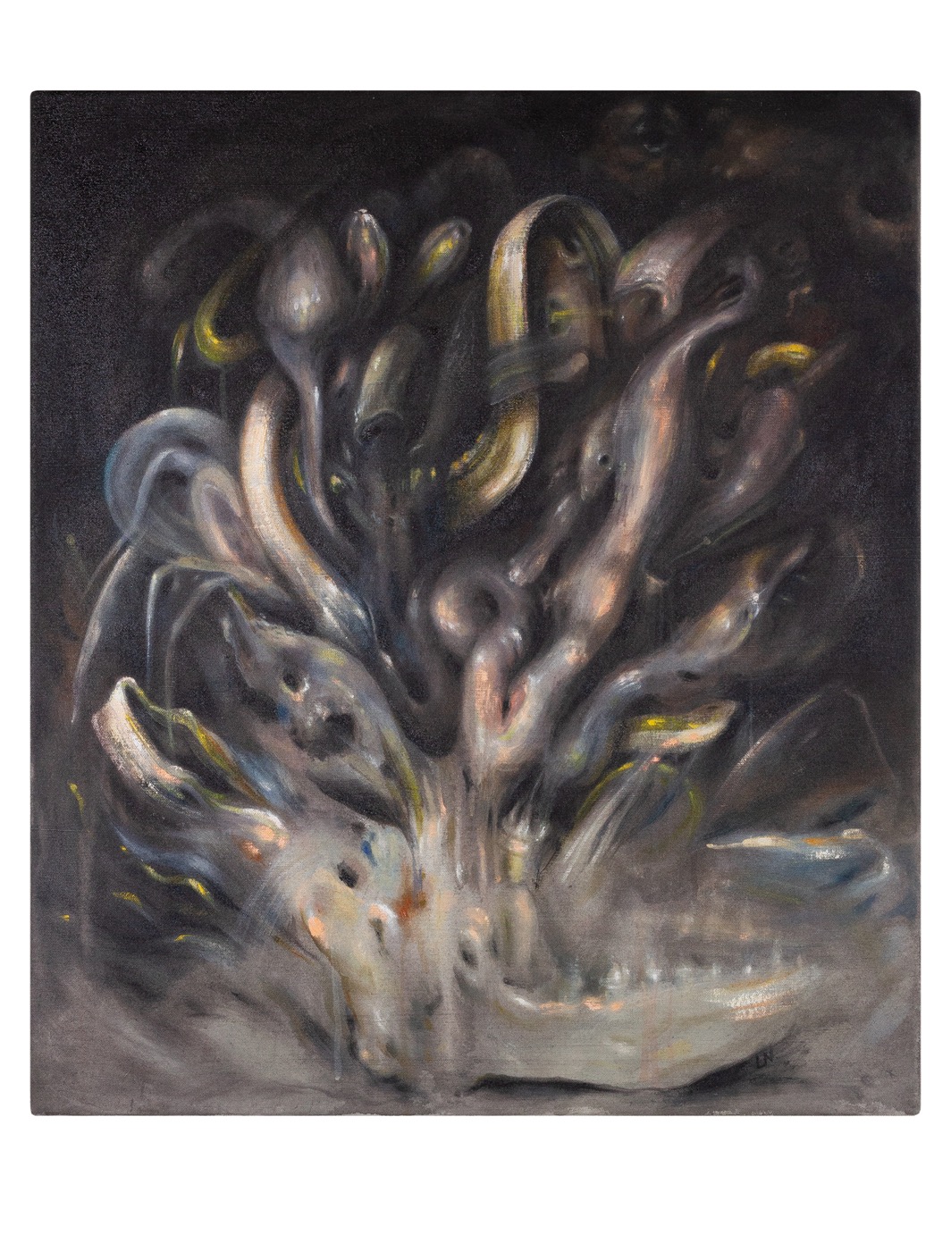 CZ mraků jako obecného pojmu, meteorologického jevu a shluku vodních par, ukrývajících na idealizovaných výsostech v nebeských sférách, božstva a tajemství se náznakem stává primitivní organismus. Probíhá plodivý proces proměny a stvoření, vzniku nové struktury i jakési zhrubnutí, zhmotnění, změna v animální živou hmotu. Zachycuji ztrátu tajemství, nadpozemskosti, materializaci duchovního.